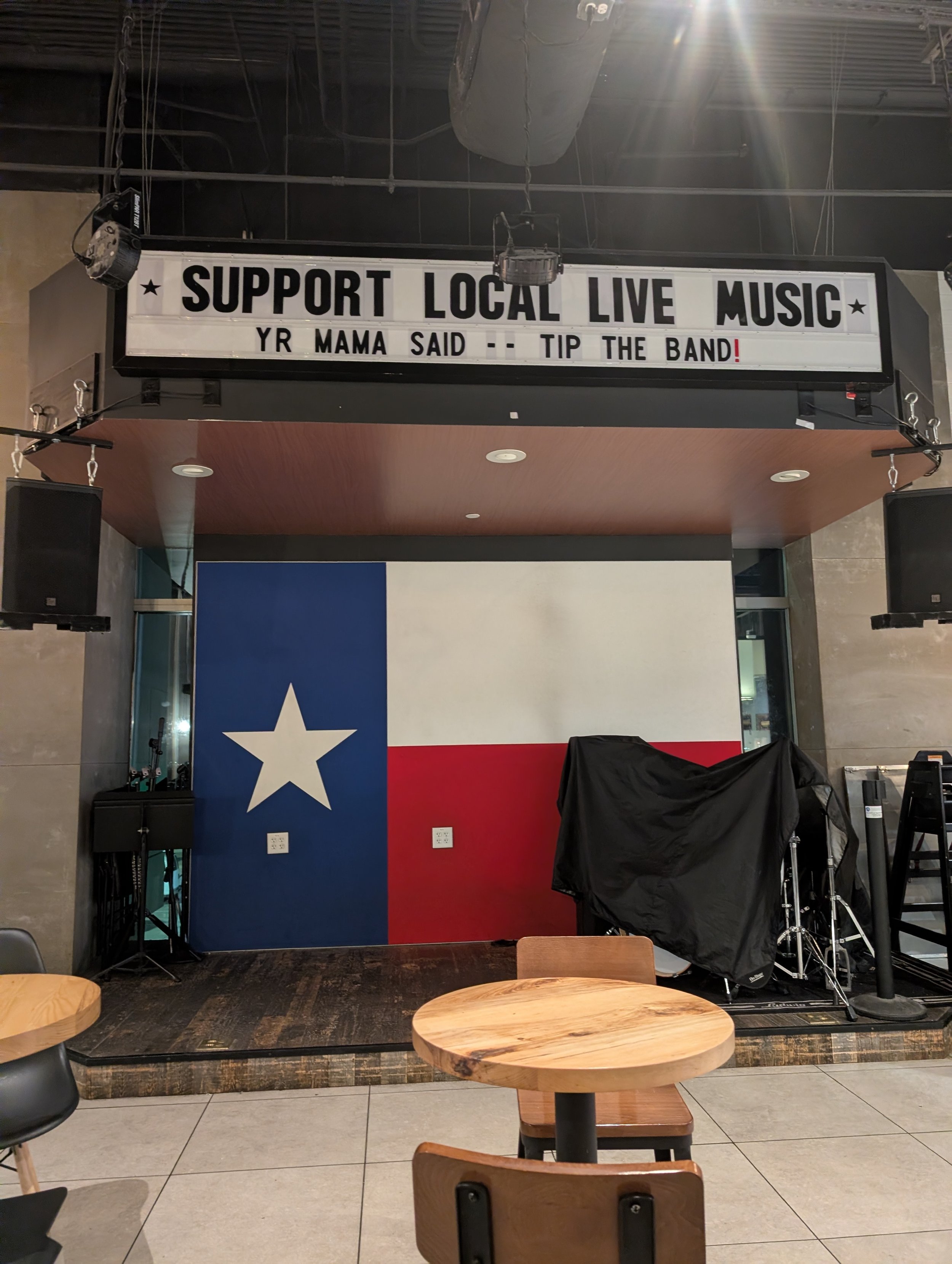 Which, I can agree with to a point - the Austin airport does feel very Austin, in a corporate, washed down way that still makes it stand out from other airports. There were actually two live bands I walked past to get to this quiet nook to write this post, which is actually another stage that’s not being used right now.