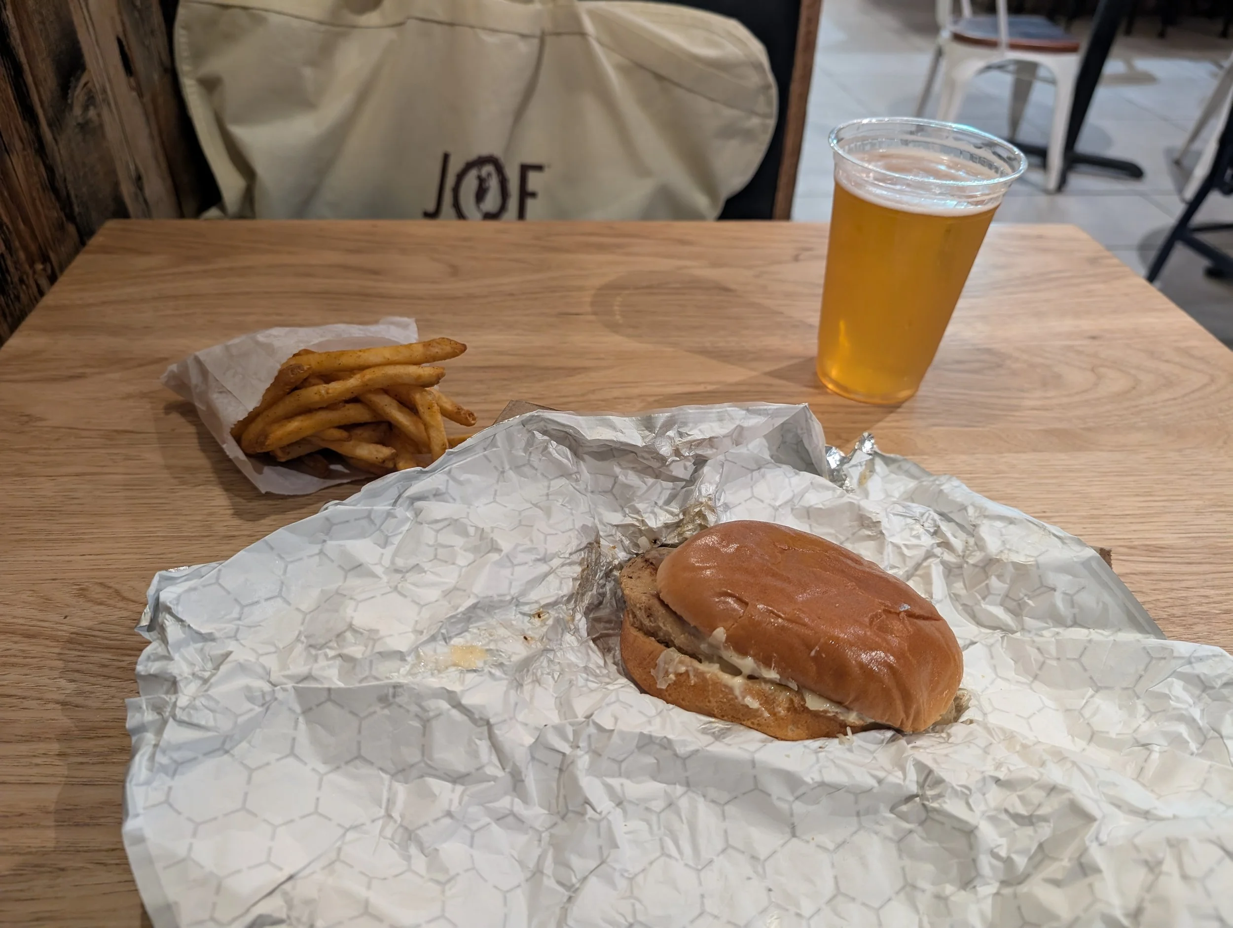 Good ahead. Look at it. A chicken sandwich and some fries. (Beer is exempt from this scenario). Take a guess at how much this very simple meal set me back.