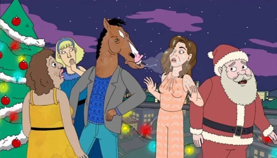 Bojack Horseman, pictured here sneezing on Marisa Tomei at a Christmas party.