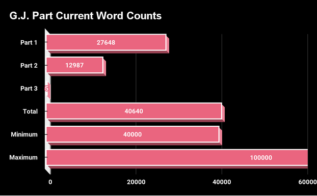 It’s fun to look at these numbers. It’s daunting to think about what I have left to write, but it is neat to see how much progress there is and how deep into G.J. I’ve gotten in a relatively short time. I mean, where were we a few weeks ago when I posted my first update? When was that?